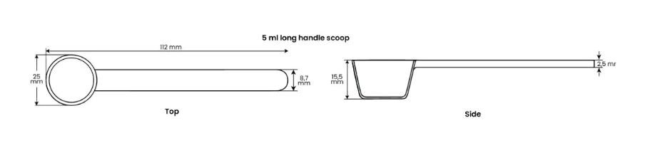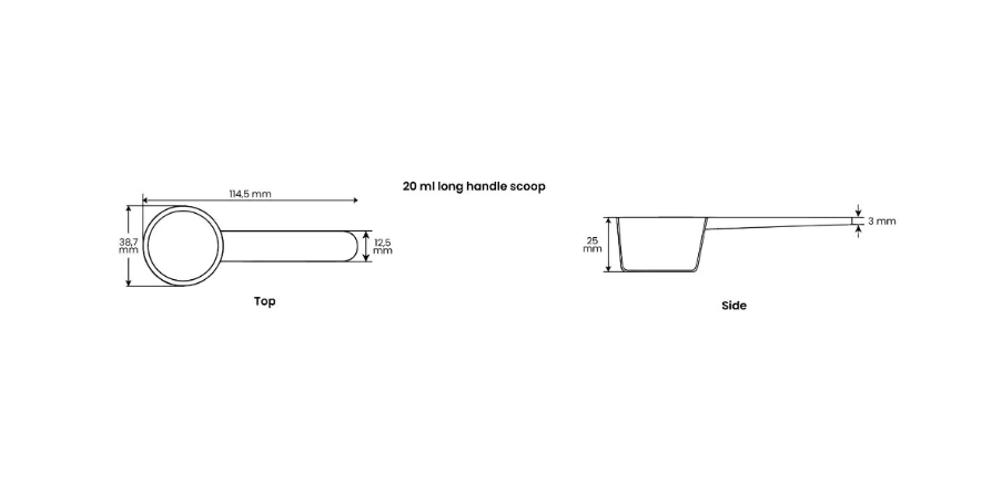 Le long manche permet d'introduire plus facilement les cuillères dans les sachets à fond plat. C'est idéal pour les produits tels que les poudres, les compléments alimentaires, le café, etc. Grâce au design transparent, vous pouvez mieux voir votre produit lors de la mesure. Disponible en boîtes de 1 000 pièces !