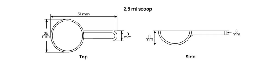 | Cuillère-mesure à fond rond | 1ml, 2,5ml, 5ml, 10ml, 15ml, 25ml, 30ml, 50ml |