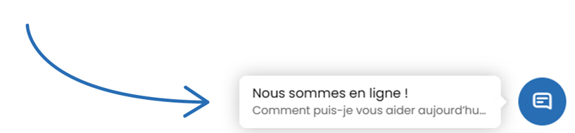 Entre 9 h 30 et 12 h 30 et entre 13 h 30 et 16 h 00, vous pouvez également nous joindre via le chat en direct. Vous ouvrez le chat en cliquant sur l’icône en bas à droite de votre écran.