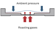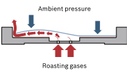 Pendant que la surpression est en augmentation, la membrane augmente à un endroit de la valve jusqu'à ce qu'un canal est formé par laquelle les gaz de torréfaction peuvent échapper à l'extérieur.